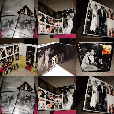Anyway, since most of you have not seen our actual wedding album.. I took some photos of it. We chose the digital photography package that gave us two mini albums which we gave to my mom and his mom plus the main album which is like a coffee table book. The photos are printed like a book so its not your ordinary white wedding album that has white covers.